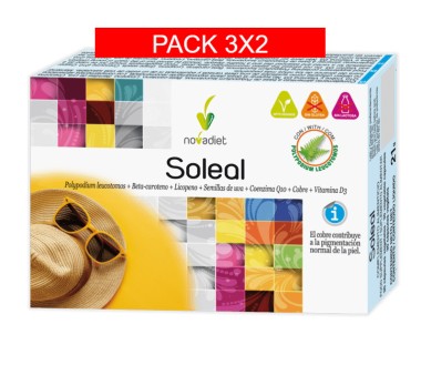 -33% Quick view VITAMINAS, MINERALES Y ANTIOXIDANTES Pack 3x2 Soleal 30 Cápsulas Vegetales. Novadiet Precio regular 50,55 € -33% Precio 33,87 € Carro