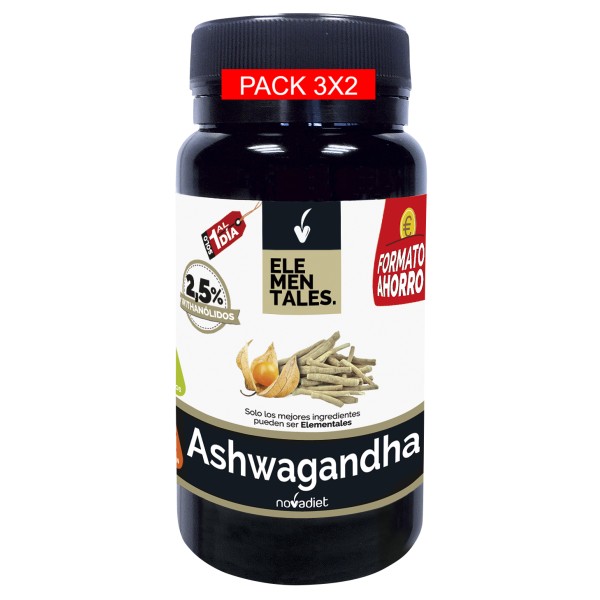 Pack 3x2 Ashwagandha Elementales Formato Ahorro 60 Cápsulas. Novadiet
